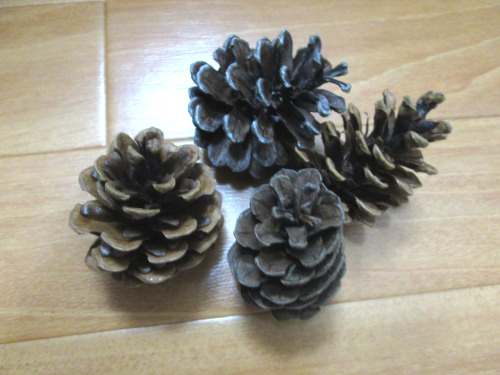 車に戻って脚を拭いていたら、小学生の男の子がアンクとナイルにきれいな松ぼっくりをくれました。