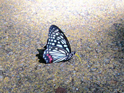 ひらひらと飛んで来たかと思ったら、足元に止まった蝶々。