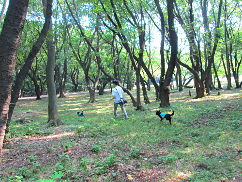 公園の手前で、やっぱり黒いワンちゃんを発見。