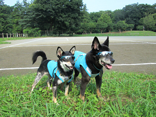 公園に行く途中で車の中から、アンクよりちょっと大きい黒い豆柴ちゃん発見。