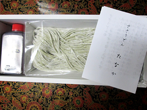 笹を練り込んであるおうどんですが、お蕎麦くらい細い。