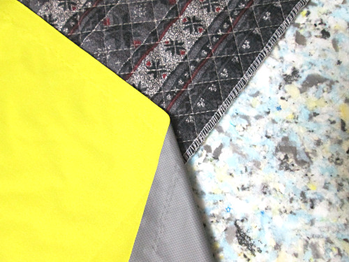 左下の黄色とグレー、これが防水シートです。黄色の表が撥水、裏のグレーが防水になっています。