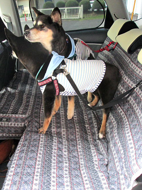 ついでに、犬用のシートベルトも作りました。今までのものはすでに10年以上も使用していたので。少し長くできるようにしたので、ちょっと降ろす時にもそのままヘッドレストからはずせばリードになります。