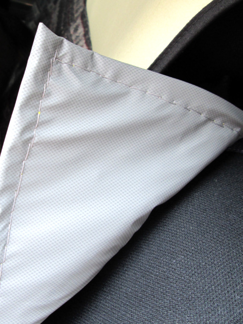 キルトを包むように、裏を防水にして縫います。ひたすら縫います。縫い目なんぞ、気にせず縫います。