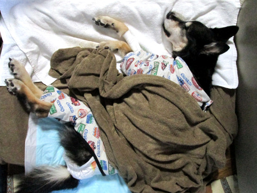 ぐったりして寝ていたのに対して、今日はクッションの枠に頭を乗せるという余裕も見られました。
