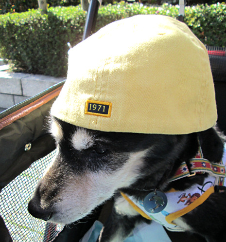 このバギー、もちろん折り畳みができて、前後輪にサスペンションがついているのでスムーズです。後面をはずすと犬が昇り降りのできるスロープにもなります。手元にハンドブレーキがついているので安心。車輪の音はほとんどしません。いつもは車(人間用)の後ろに積んでいます。
