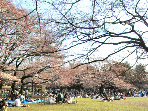 いつも休憩する広場は、もうお花見をする人たちで、ほとんど地面が見えず。笑