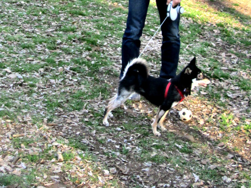 人の少ないところへ移動して、持ってきたボールで遊ぼうと思ったのに、全然その気なし。