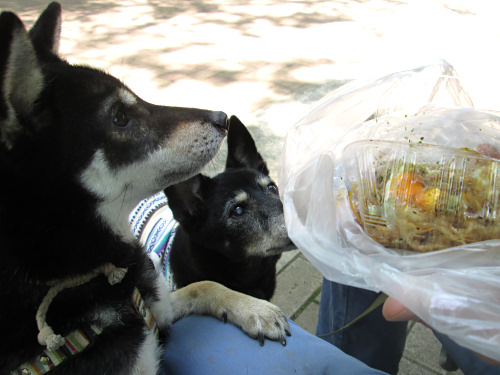 私が話しかけられていると、反対側から食べ物を千切って落とす人あり。