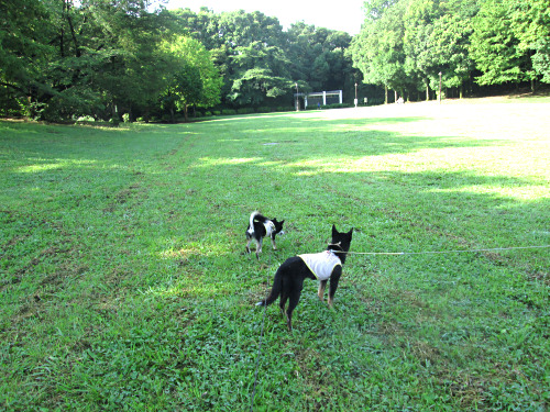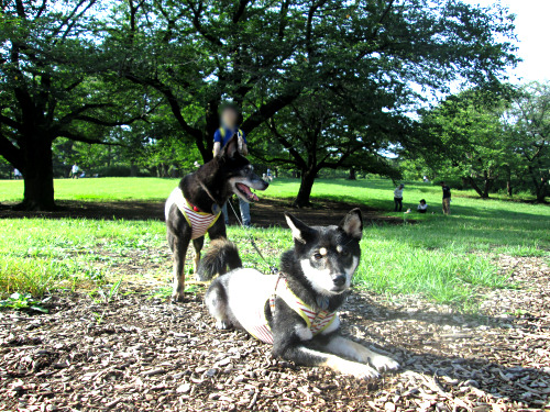 やっぱり黒い犬は早く来ないと、太陽に焼かれちゃうのね。