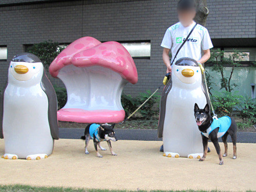 ペンギンさんと記念撮影…って、アンク、デカいペンギンが怖いです。笑
