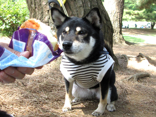 できるだけ涼しい日陰を選んで、ちょっとだけ歩かせました。
