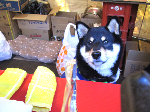 境内には甘酒などの屋台があったんですが、中の椅子にちょこんと座って人々を眺めている黒柴ちゃんが。