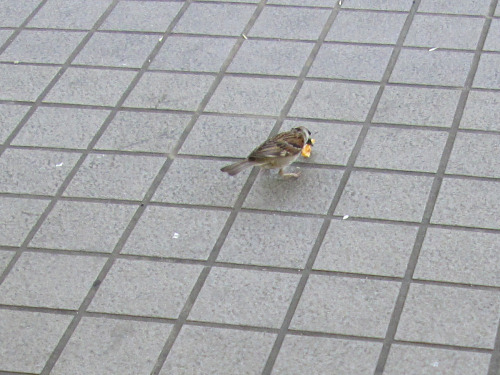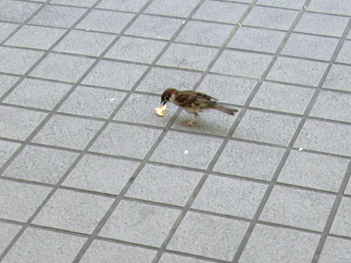 この後このスズメは、たくさんのスズメやハトに追いかけられましたが、ちゃんと逃げ切りました。
