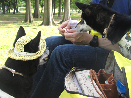 日陰でおやつももらって、水も飲んで、そろそろ帰ろうか。