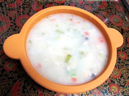 通常ならギリギリ問題ない大きさだし、へりに高低がついていて食べやすいのですが、水分を採らせるためにスープ状にするため、低いところに合わせるとあまり水が入りません。