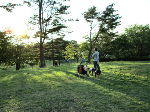 昼間は温度が高かったので、夕方になって久しぶりに大きな公園へ緑のフレッシュエアーを求めて。