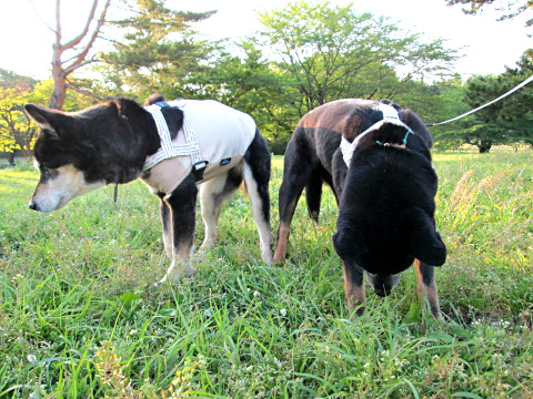 近くに他の犬がいないことを確認して、時々ネフティーのリードをはずしてやります。目も見えないし、走ることはないので、少しの時間ですが自由な時間を満喫させてやりました。