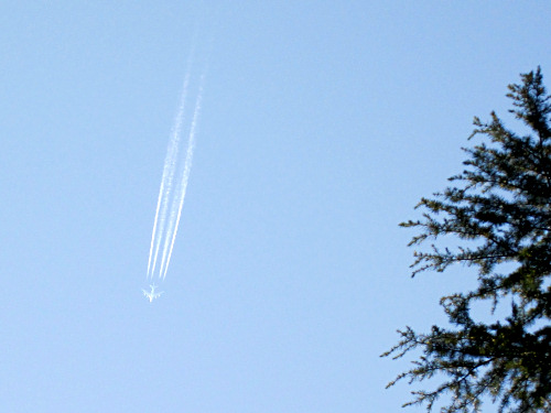 高い空にきれいなひこうき雲。