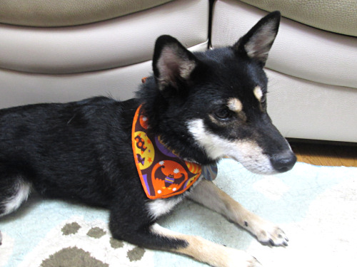 帰ってきたら、ハロウィンのバンダナをもらってきました。