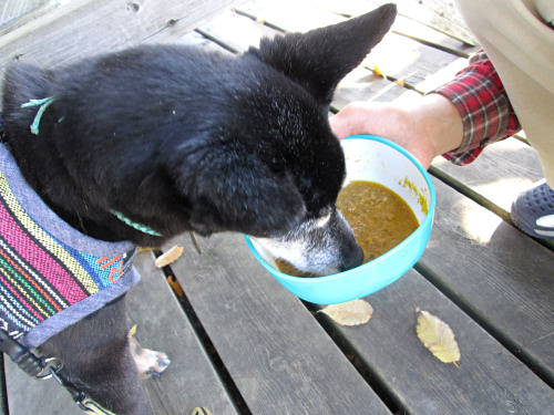 赤ちゃんを産んだばかりのお母さんの黒柴ちゃん。