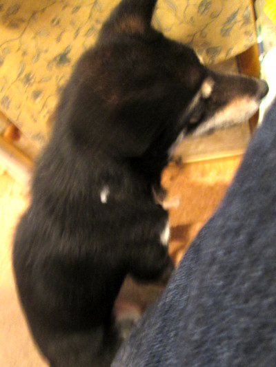 うちにいた前の誰かさんなら、強引に前に出て鼻を突っ込んでいたでしょうが、アンクはお座りして興味津々で見ています。