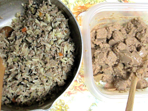 左はナイルのご飯、右はゼラチンでゆるく固めたネフティーのご飯。