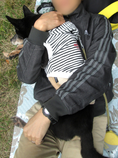 シートを敷いて、ナイルを湯たんぽにしてダンナは昼寝。