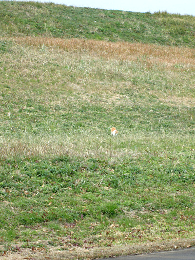 空が明るくなってきたので、かなり急ですが土手を登ってみることにしました。