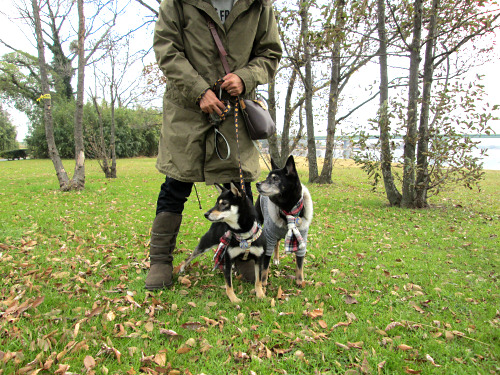 しばらく湖沿いを歩いて、パラパラくると木の下で雨宿り。