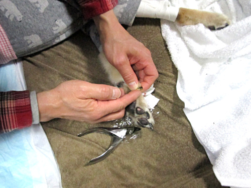 一滴の血が必要なんですが、耳から採れないため、爪を切って採ります。