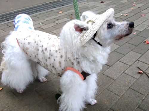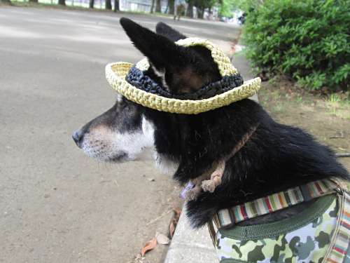 今日は陽が差していなかったので帽子は被せていませんでしたが、リュックから出してナイルのを被ってもらったら、あらお似合い♪