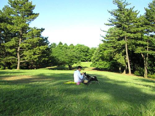 木のテーブルでランチを食べたら、いつもは人がたくさんいる芝生の山へ。