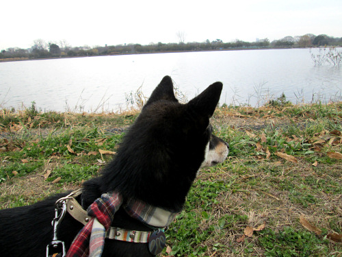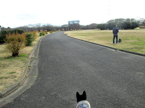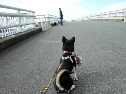 朝から騒いでいるので、いつもの散歩コースに連れて行きました。