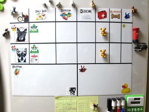 ということで、私ひとりならホワイトボードも必要ないのですが、ダンナがご飯をあげるときのために作りました。