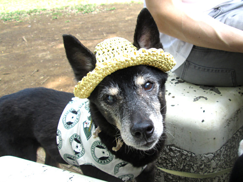 昨年の夏には、犬サイズの普通の麦わら帽子を編みました。