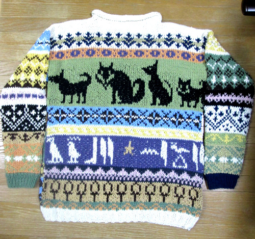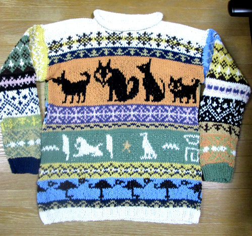 編み込みセーターは大好きなんですが、糸を替えるのが大変だし、もっと大変なのは後始末。