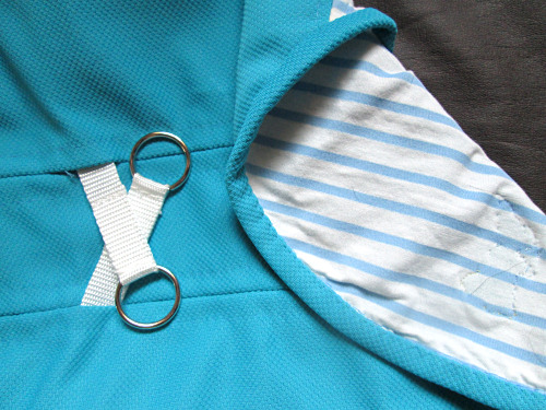 ナイルはハーネスをつけなくてもいいように、内側にテープを縫い込んで。