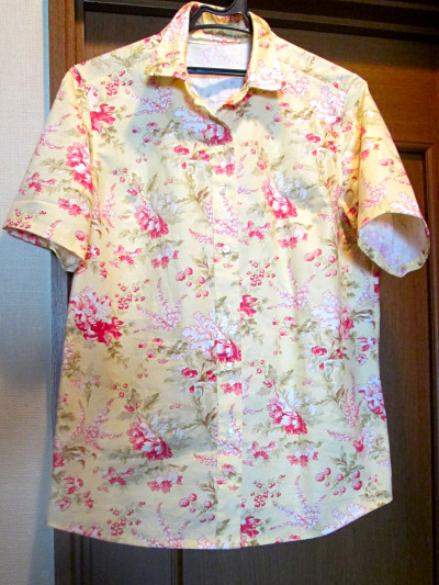 夏らしい明るい色なんですが、年齢に合わせて、ちょっとカチッとしたシャツにしてみました。笑
