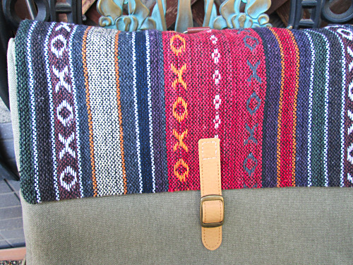 このネパールの織物がとても気に入って、大量に購入したので使ってみました。帆布は厚くてしっかりしています。グレーっぽく見えますが深緑色。