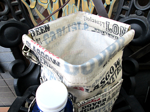 普段使いのショルダー。短い持ち手にも付け替えられます。裏にポケットをつけました。