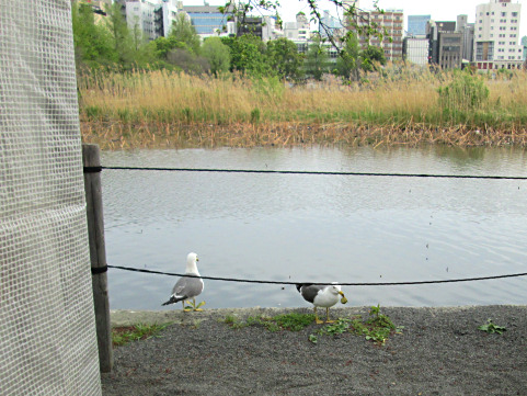 屋台のおばちゃんに聞いたところ、海鳥だそうです。これがかなり獰猛で、カラスや鳩は追っ払っちゃうんだそう。いくつも海鮮の屋台がありましたが、やっぱり油断をすると持っていかれるんだそうです。